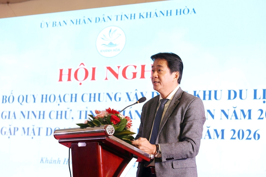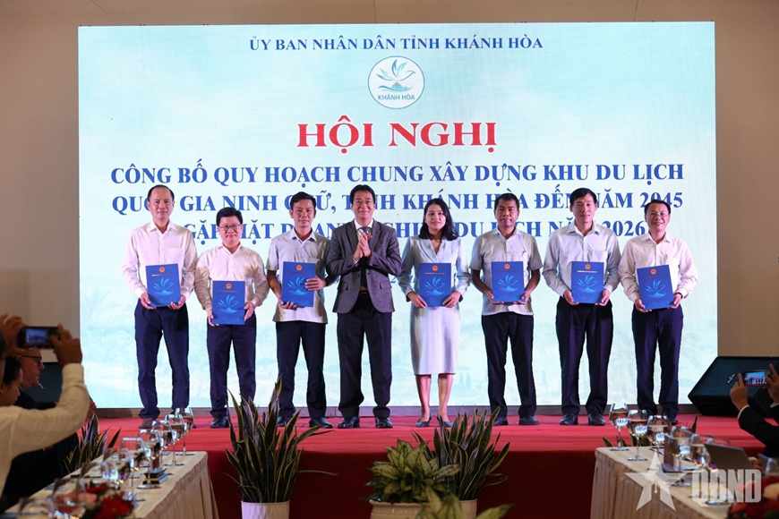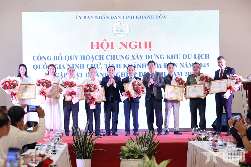 Tại hội nghị, UBND tỉnh Khánh Hòa công bố Quyết định số 384/QĐ-TTg của Thủ tướng Chính phủ về việc phê duyệt Quy hoạch chung xây dựng Khu du lịch quốc gia Ninh Chử đến năm 2045.