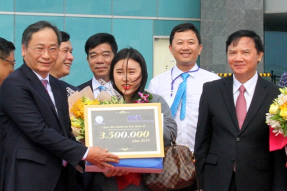Ngày 18-12, Sở Du lịch phối hợp với Cảng Hàng không quốc tế (HKQT) Cam Ranh, tỉnh Khánh Hòa tổ chức lễ đón vị khách du lịch quốc tế 3,5 triệu và vị khách thứ 10 triệu thông qua Cảng HKQT Cam Ranh trong năm 2019.