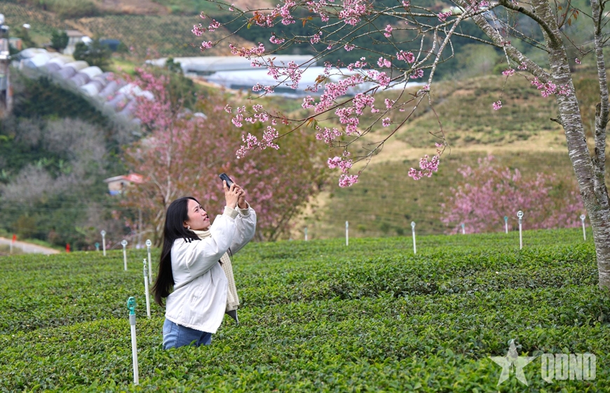 | Hoa mai anh đào trên đồi trà Cầu Đất, phường Xuân Trường-Đà Lạt, tỉnh Lâm Đồng. |
