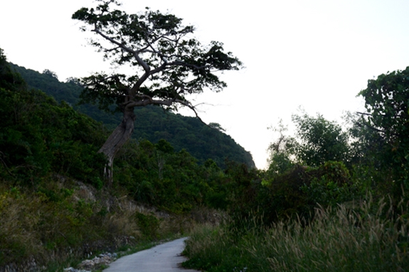 Đường ra bãi Nhum thoang thoảng hương hoa rừng. Người dân ở đây cho biết, khi nắng ấm lên, tắc kè, trăn và rắn thường bò lên đường để sưởi ấm. |