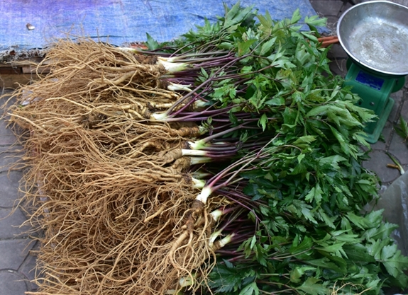 Đương quy là loại cây thuốc bắc, người dân ở đây dùng như một loại rau. Cây đương quy có thể dùng cả phần thân và phần củ để chế biến các món canh, món xào. |