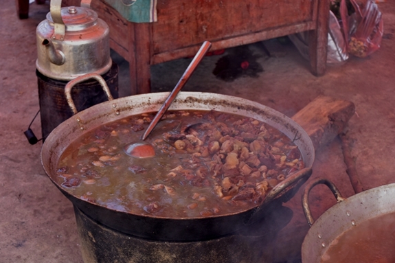 Thắng cố là món ăn không thể thiếu trong mỗi phiên chợ Bắc Hà. |