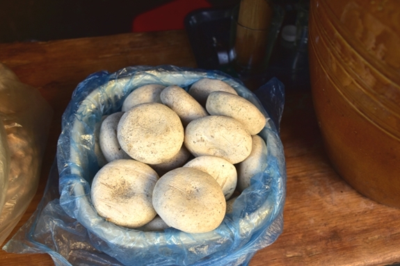 Mèn mén được làm từ ngô và thường được nhiều gia đình dùng thay cơm tẻ. Sau mỗi vụ thu hoạch người dân phân loại ngô rồi phơi khô để dùng dần. |