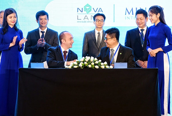 Lễ ký kết thỏa thuận giữa các tập đoàn đầu tư quốc tế với các tập đoàn trong nước tại diễn đàn. |