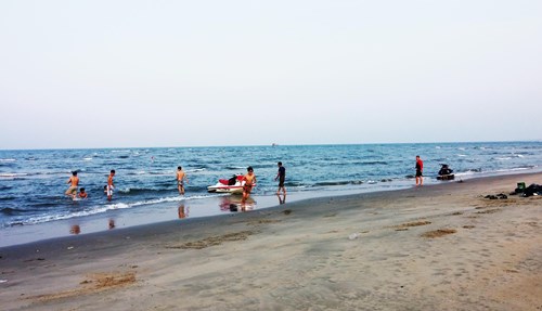 Du khách đến với biển Nhật Lệ đầu tháng 5-2016.