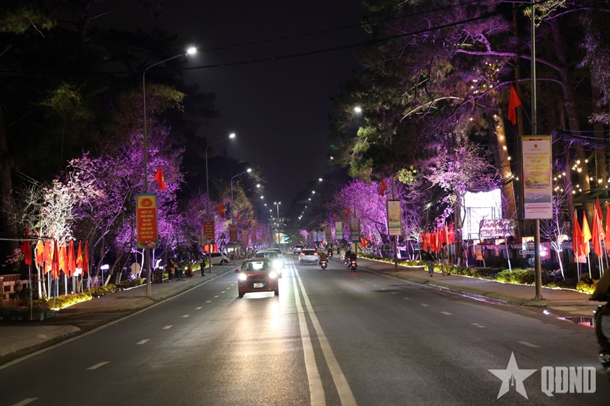 Với chủ đề “Sáng tạo cùng hoa Mai anh đào Đà Lạt”, đường hoa ánh sáng, nghệ thuật được thực hiện tại cung đường Trần Hưng Đạo.