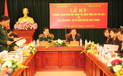 Phát biểu tại buổi lễ, ông Nguyễn Văn Tuấn, Tổng cục trưởng Tổng cục Du lịch khẳng định, sự hợp tác giữa ngành Du lịch và lực lượng bộ đội biên phòng đã có từ lâu, song sự kiện ký kết Chương trình phối hợp giữa Tổng cục Du lich và Cục Cửa khẩu sẽ đảm bảo cho sự hợp tác giữa ngành Du lịch và lực lượng bộ đội biên phòng chặt chẽ, bài bản và thực chất hơn. Tổng cục trưởng Nguyễn Văn Tuấn đề nghị các cơ quan chức năng của Tổng cục Du lịch và Cục Cửa khẩu sẽ phối hợp thực hiện nghiêm túc những nội dung chi tiết được nêu trong Chương trình phối hợp nhằm đảm bảo đem lại hiệu quả cao nhất.