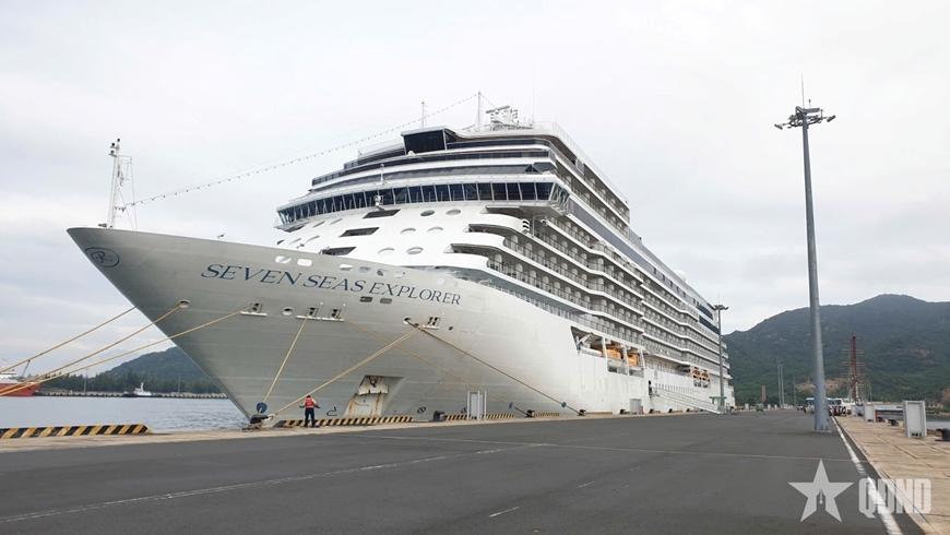 Tàu du lịch Seven Seas Explorer cập Cảng quốc tế Cam Ranh (Khánh Hòa).