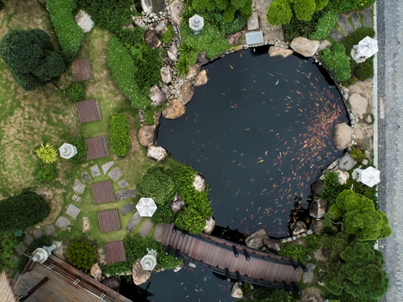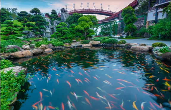 Đi qua cầu Koi, du khách sẽ đến với Zen Garden. Khu vườn được thiết kế bởi kiến trúc sư lừng danh Bill Bensley, lấy cảm hứng từ khu vườn Okayama Korakuen nổi tiếng của Nhật Bản. |