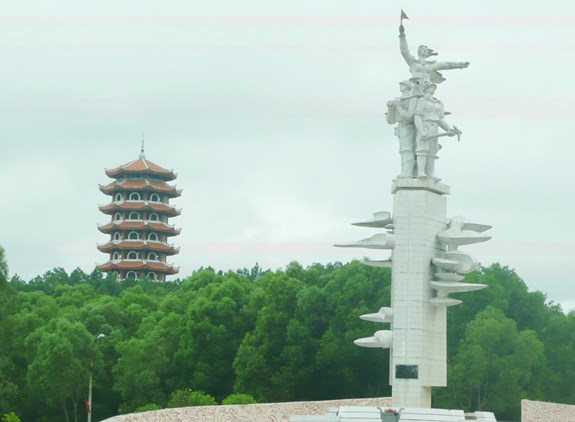 Tượng đài Chiến thắng và Tháp chuông Đồng Lộc. |