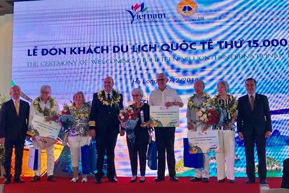 Ngày 19-12, Tổng cục Du lịch, Bộ Văn hóa, Thể thao và Du lịch phối hợp với UBND tỉnh Quảng Ninh tổ chức lễ đón vị khách quốc tế thứ 15 triệu đến Việt Nam năm 2018 tại Cảng tàu du lịch quốc tế Hạ Long, Quảng Ninh.