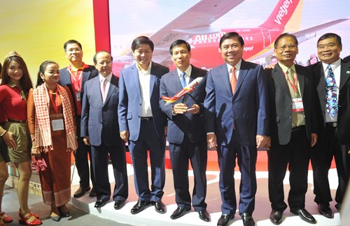 Lãnh đạo TP Hồ Chí Minh và Bộ Văn hóa, Thể thao và Du lịch thăm gian hàng của Vietjet.