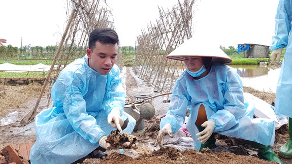 Lớp học đầu bờ về kỹ thuật chăm bón cây trồng do Trung tâm học tập cộng đồng phường Trường Thịnh, thị xã Phú Thọ (Phú Thọ) tổ chức cho người dân. |