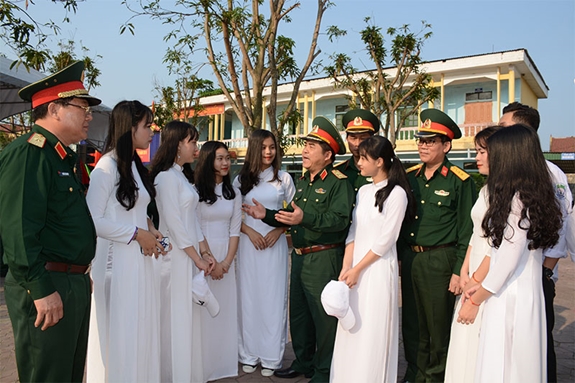 Đoàn công tác Ban Tuyển sinh quân sự Bộ Quốc phòng kiểm tra công tác tuyển sinh tại Trường THPT Nguyễn Du (Nghi Xuân, Hà Tĩnh), tháng 3-2019. Ảnh: HÀ KIM NGỌC