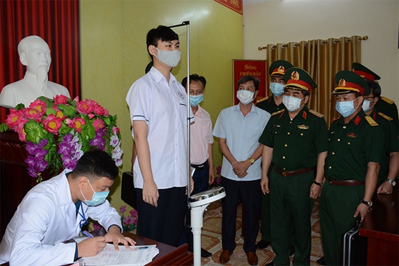 Lãnh đạo Ban Tuyển sinh quân sự Bộ Quốc phòng kiểm tra công tác khám sơ tuyển sức khỏe tại thành phố Uông Bí, tỉnh Quảng Ninh. Ảnh: HÀ KIM NGỌC