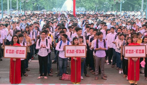 Các tân sinh viên của Trường ĐHBK Hà Nội dự lễ khai giảng năm học mới.