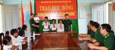 Năm 2016, thực hiện Chương trình “Nâng bước các em tới trường” do Bộ tư lệnh BĐBP phát động, BĐBP tỉnh Đắc Lắc đã nhận đỡ đầu 40 học sinh (từ lớp 1 đến lớp 12) có hoàn cảnh đặc biệt khó khăn trên địa bàn các xã biên giới Ia Lốp, Ia Rvê, Ea Bung (huyện Ea Súp) và xã Krông Na (huyện Buôn Đôn). Theo chương trình, mỗi cháu sẽ được hỗ trợ 500.000 đồng/ tháng. Nguồn kinh phí thực hiện chương trình được trích từ tiền tiết kiệm lương, phụ cấp của cán bộ, chiến sĩ, công nhân viên chức quốc phòng và quỹ tăng gia sản xuất của các đơn vị.