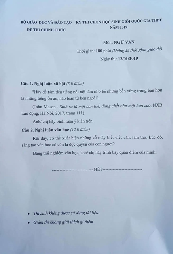 Đề thi môn Ngữ văn trong Kỳ thi chọn học sinh giỏi quốc gia năm 2019 |