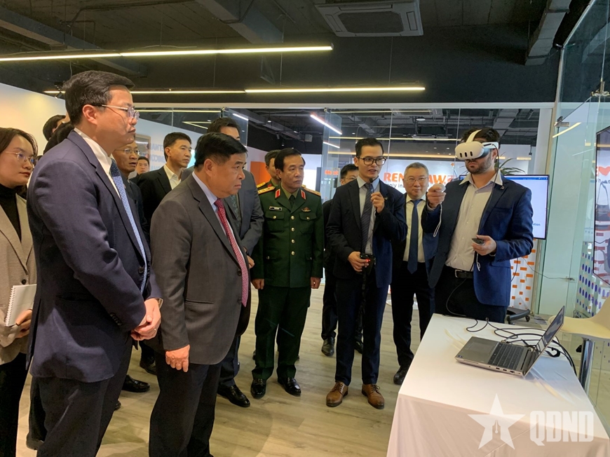 | Phó thủ tướng Chính phủ Nguyễn Chí Dũng và các đại biểu nghe giới thiệu về Trung tâm Nghiên cứu - Phát triển và Trung tâm Xuất sắc về Trí tuệ nhân tạo và Bản sao số. |