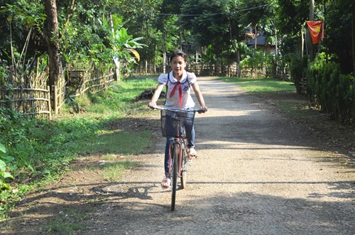 Chúng tôi về xã Phú Nghiêm (huyện Quan Hóa), một xã miền núi phía tây bắc tỉnh Thanh Hóa, nơi có những dẻo đồi núi cao xanh ngắt và những ngôi nhà sàn truyền thống của đồng bào các dân tộc. Tại đây, chương trình “Vì em hiếu học” vừa trao 10 suất học bổng tặng 10 em học sinh khá, giỏi có hoàn cảnh đặc biệt khó khăn. Mỗi suất học bổng là một chiếc xe đạp trị giá một triệu đồng. Trong số 10 em nhận được học bổng của chương trình, tôi vẫn nhớ như in trường hợp em Ngân Ngọc Anh, học sinh Lớp 7B, Trường Trung học cơ sở thị trấn Quan Hóa. Khi đến thăm gia đình em tại bản Vinh Quang, xã Phú Nghiêm, chúng tôi đã chứng kiến hoàn cảnh vô cùng khó khăn của gia đình. Gia đình em gồm 5 người, sống trong ngôi nhà sàn đơn sơ, dột nát, đồ đạc hầu như chẳng có gì, bố mẹ em thường xuyên đau ốm. Kinh tế của gia đình chỉ trông vào 2 sào ruộng. Được nhận xe đạp từ chương trình, đường từ nhà đến trường đối với Ngọc Anh như gần hơn, đỡ vất vả hơn. “Nhà em cách trường 8km. Trước đây, em phải dậy từ 4 giờ sáng để đi bộ đi học. Em đã từng ước ao có một chiếc xe đạp. Từ khi có chiếc xe này, em không phải dậy sớm thế nữa, em còn đèo các em nhỏ trong bản đi học cùng và đi chơi. Vui lắm!”-Ngọc Anh cười bẽn lẽn nói.