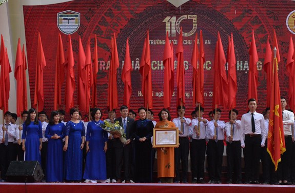 Chủ tịch Quốc hội Nguyễn Thị Kim Ngân trao Huân chương Độc lập hạng Ba tặng Trường THPT Chu Văn An.