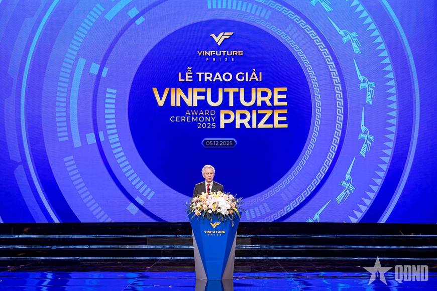 Tại buổi lễ, GS Richard Henry Friend, Chủ tịch Hội đồng Giải thưởng VinFuture bày tỏ niềm tự hào được đồng hành cùng Quỹ trong sứ mệnh lớn lao, tôn vinh những phát kiến khoa học mang lại lợi ích thiết thực cho hàng triệu, thậm chí hàng tỷ người trên thế giới. "Các nhà khoa học được vinh danh năm 2025 đã mang đến những khám phá khoa học xuất sắc, góp phần tạo ra lợi ích lớn lao cho xã hội, cả về phúc lợi con người lẫn phát triển bền vững. Công trình của họ nhắc chúng ta rằng khoa học không chỉ là tri thức, mà còn là trách nhiệm - trách nhiệm đóng góp vào tương lai tốt đẹp hơn cho hành tinh và các thế hệ tiếp theo", GS Richard Henry Friend cho biết.