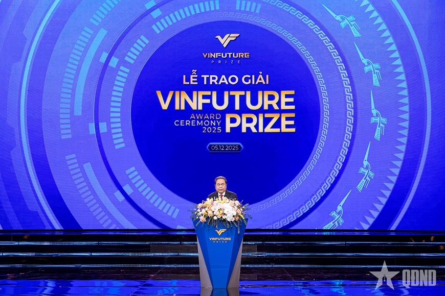 | Chủ tịch Quốc hội Trần Thanh Mẫn dự Lễ trao giải VinFuture 2025. |