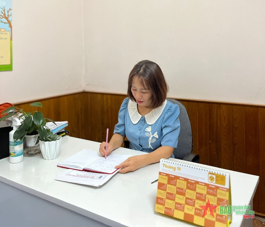 | Sau giờ học với trẻ, cô Nguyễn Thị Viên lại trở về với công việc chuyên môn của mình. |
