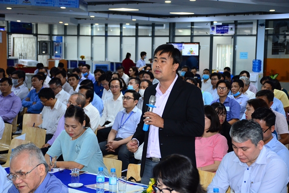 Đại biểu điểm cầu TP Hồ Chí Minh phát biểu ý kiến. |