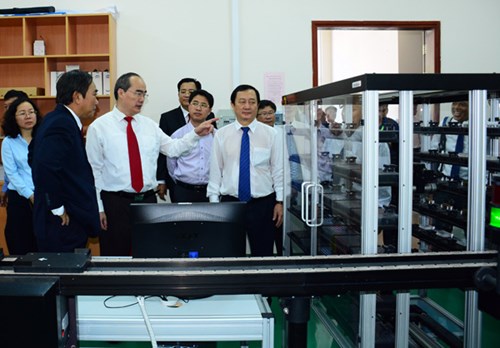 Đồng chí Nguyễn Thiện Nhân cùng các đại biểu thăm Trường Đại học Quốc tế thuộc ĐHQG TP Hồ Chí Minh.