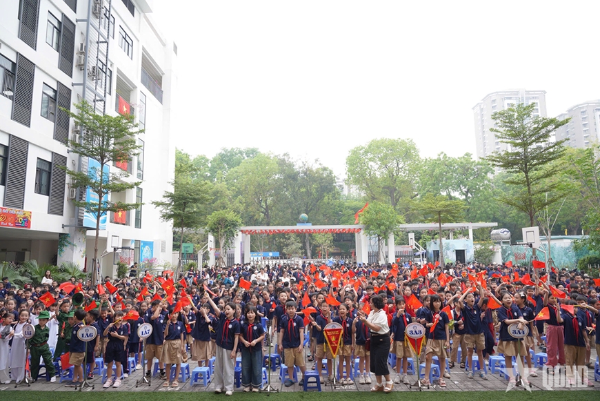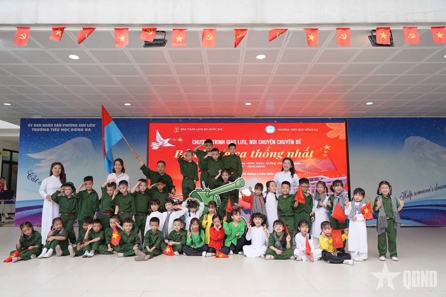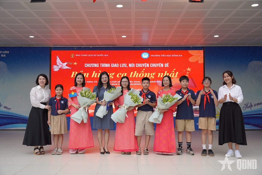 Sáng 20-4, trong tiết sinh hoạt dưới cờ tại Trường Tiểu học Đống Đa, chương trình giao lưu, nói chuyện chuyên đề “Bản hùng ca thống nhất” được tổ chức với nội dung phong phú, hình thức thể hiện sinh động. Hoạt động không chỉ góp phần tri ân quá khứ mà còn cho thấy hướng đổi mới trong giáo dục lịch sử ở bậc tiểu học, khi kiến thức được truyền tải theo cách gần gũi, dễ tiếp nhận hơn với học sinh.