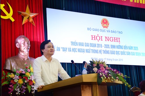 Bộ trưởng khẳng định sẽ sớm công bố sớm dạng thức bài thi trắc nghiệm Tiếng Anh để học sinh, thầy cô làm quen. Đặc biệt quan tâm đến đối tượng học sinh lớp 12. Đồng thời, tăng cường giám sát chất lượng người học để tạo được chuẩn theo các khung năng lực. Quan tâm đến môi trường cho học tiếng Anh, hình thành các CLB…; tạo ra một xã hội học tập tiếng Anh theo hướng nhẹ nhàng, hiệu quả, làm sao việc học tiếng Anh từ áp lực trở thành động lực.