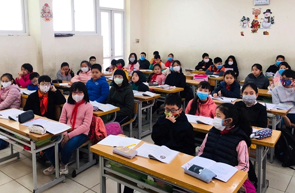 Học sinh đeo khẩu trang để phòng, tránh dịch bệnh. |
