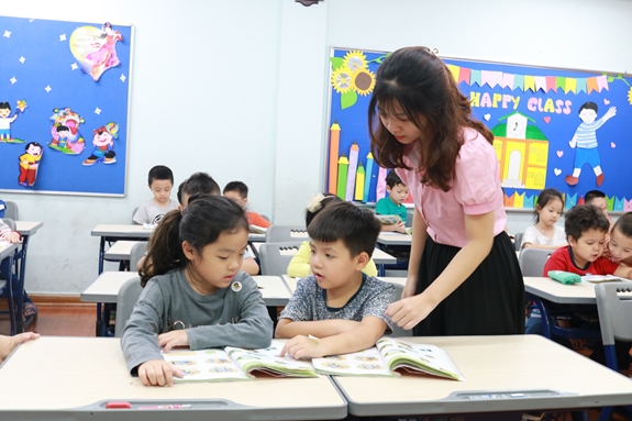 Một giờ học của cô và trò Trường Tiểu học Nguyễn Bỉnh Khiêm (quận Cầu Giấy, Hà Nội). Ảnh: Hoài Nguyễn. |
