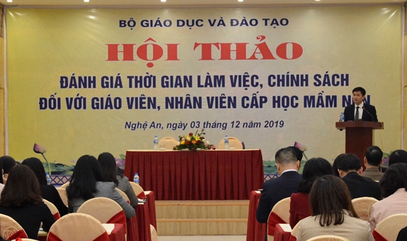Ngày 3-12, tại Nghệ An, Bộ Giáo dục và Đào tạo (GD&ĐT) tổ chức Hội thảo đánh giá thời gian làm việc, chính sách đối với giáo viên, nhân viên cấp mầm non.
