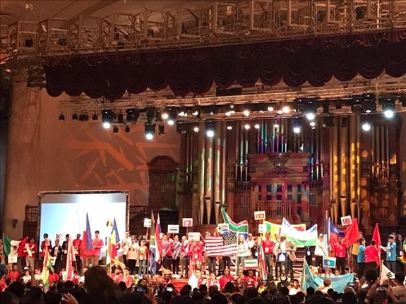 Đoàn gồm 15 học sinh của Trường THPT Chuyên Hà Nội – Amsterdam, đại diện cho học sinh cả nước tham gia tranh tài tại nội dung dành cho các học sinh ở lứa tuổi dưới 14 và từ 14 - 17 tuổi.
