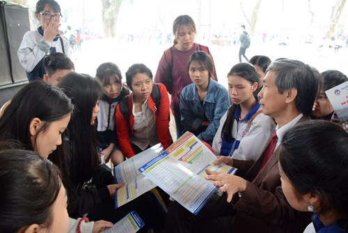 Thí sinh nhận hỗ trợ thông tin tại Ngày hội tư vấn tuyển sinh, hướng nghiệp. Ảnh: Thu Hà. |