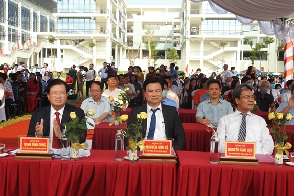 Các đồng chí lãnh đạo về dự lễ khai giảng. Ảnh: Nguyễn Hiếu |