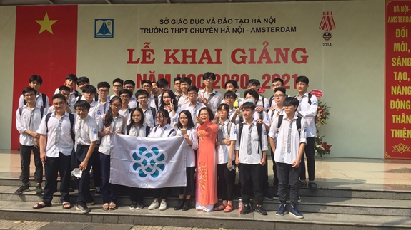Khai giảng năm nay, chỉ có học sinh khối 6 và 10 của Trường THPT Chuyên Hà Nội Amsterdam đón khai giảng ở sân trường, các khối khác tổ chức đón năm học mới trong lớp. Ảnh: Thu Hà |