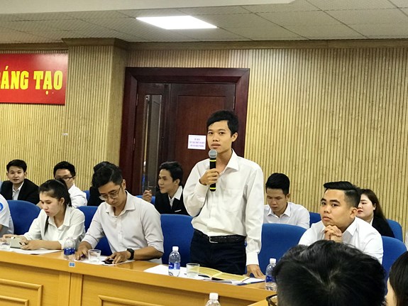 Sinh viên Nguyễn Thành Trung, Trường Đại học Bách Khoa Hà Nội chia sẻ tại tọa đàm.