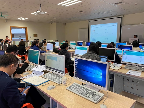 Giảng viên Trường Đại học Kinh tế Quốc dân tham gia lớp tập huấn về đào tạo trực tuyến. |
