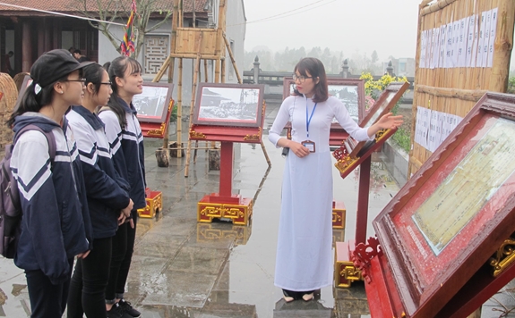 Thế hệ trẻ tìm hiểu truyền thống thi cử của ông cha dưới các triều đại phong kiến. |