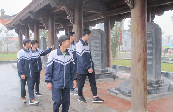 Học sinh tham quan Bia Tiến sĩ vinh danh 91 vị đỗ đại khoa là người Vĩnh Phúc. |