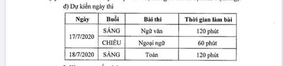 Ngoài quyết định bỏ môn thi thứ tư như kế hoạch ban đầu, lịch thi vào lớp 10 THPT của Hà Nội cũng được lùi lại khoảng 1 tháng rưỡi, dự kiến sẽ diễn ra vào ngày 17 và 18-7 thay vì đầu tháng 6 như quyết định trước đó. Yêu cầu về nội dung đề thi của 3 môn này cũng được giảm tải theo hướng dẫn tinh giản chương trình học kỳ 2 năm học 2019-2020 Bộ GD-ĐT đã ban hành.