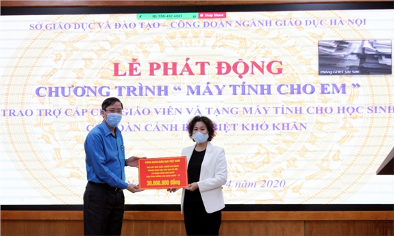 Tuy nhiên, tại nhiều địa bàn khó khăn của thành phố, vẫn còn học sinh không có phương tiện cần thiết để tham gia học trực tuyến trong mùa dịch. Với phương châm “Trong bất cứ hoàn cảnh nào, không để học sinh bị bỏ lại phía sau”, Sở GD-ĐT phối hợp với Công đoàn ngành Giáo dục Hà Nội phát động và kêu gọi các đơn vị, cá nhân trong và ngoài ngành hưởng ứng chương trình “Máy tính cho em”, nhằm giúp đỡ những học sinh có hoàn cảnh đặc biệt khó khăn đang thiếu điều kiện học tập, nhất là các em học sinh lớp 9, lớp 12.