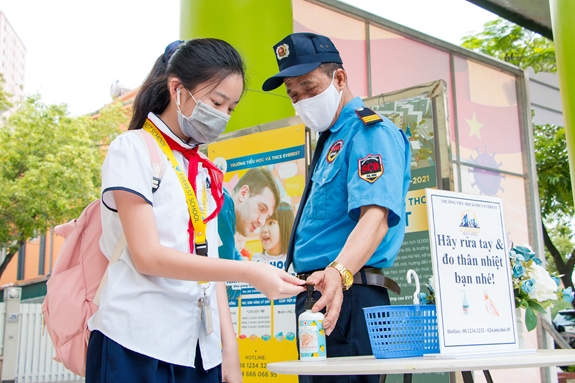 | Trường Tiểu học & THCS Everest tiến hành khử khuẩn, hoàn chỉnh mọi công tác chuẩn bị sẵn sàng cho việc đón các em học sinh trở lại học tập. |