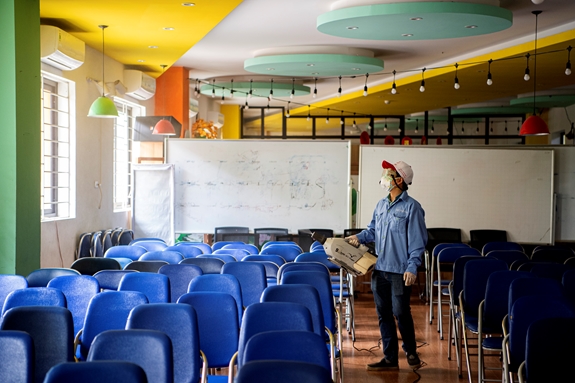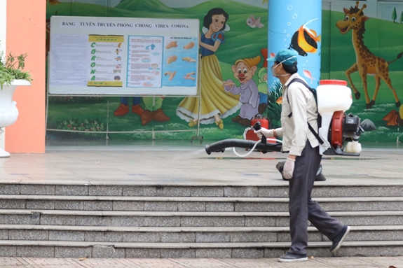 | Phun khử khuẩn mọi ngóc ngách và toàn khuôn viên của trường. |