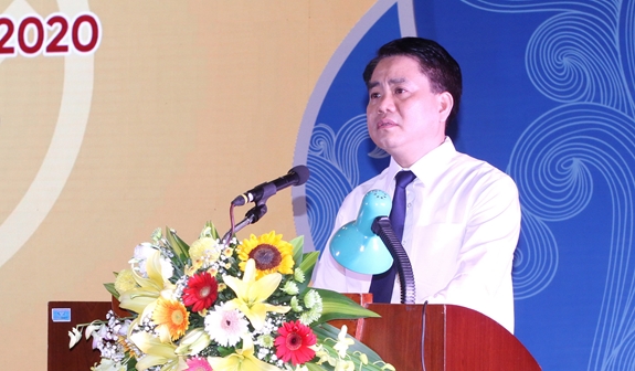 Chủ tịch UBND TP Hà Nội Nguyễn Đức Chung phát biểu tại buổi lễ. |