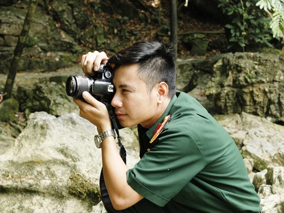 Đại úy QNCN Nguyễn Giang Nam trong một lần tác nghiệp tại cơ sở. |