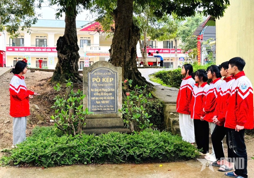 Học sinh Trường Phổ thông dân tộc bán trú THCS Văn Vũ tìm hiểu Di tích lịch sử Pò Kép.